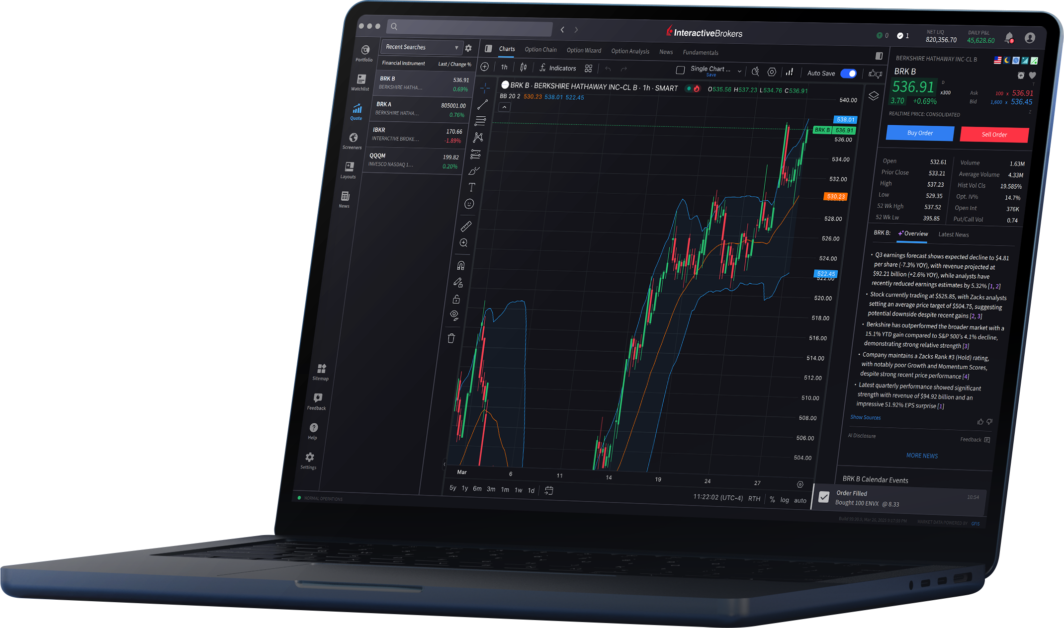盈透卓尚功能强大,同时简洁易用。将您的投资工作流程集中在一处,使您得以专注于决策而非操作。